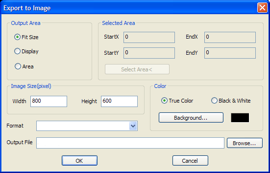 3. Specify the output area, image width, image height, color mode, background color, output file name, and set select the area for conversion when needed.